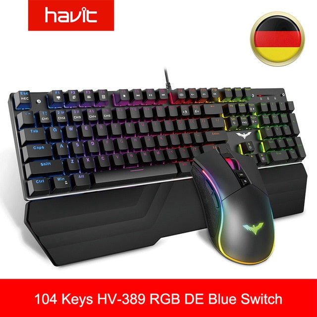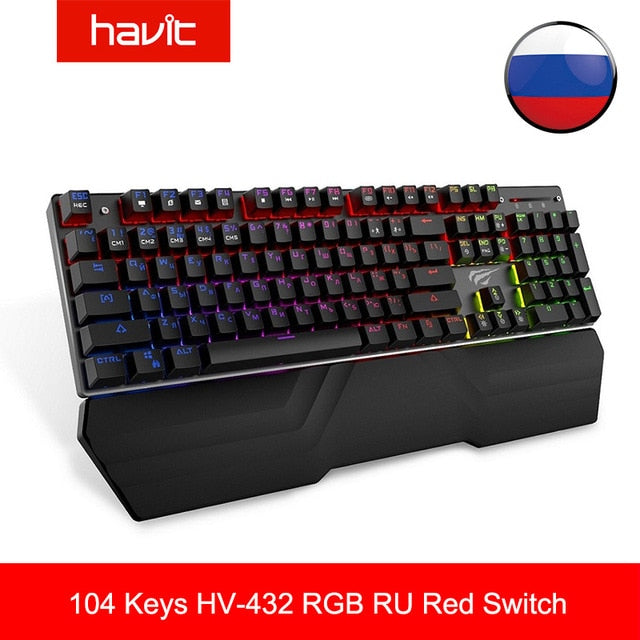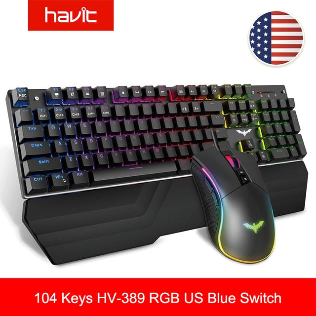 HAVIT Gaming Mechanical Keyboard 104 Keys RGB Light Blue / Red Switch Wired Keyboard or Keyboard Mouse Set Ru / English Version